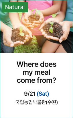 | 9/21 (Sat) | NATURALWhere does my meal come from? | 국립농업박물관(수원) |