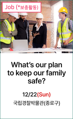| 12/22 (sun) | JOBWhat’s our plan to keep our family safe? | 국립경찰박물관(종로구) |
