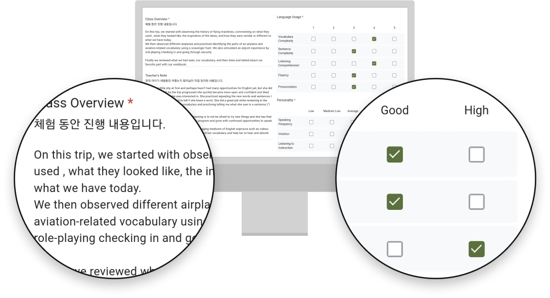 아이의 관심사, 성향, 스피킹수준을 고려하여 원어민 선생님이 아이들의 반응을 이끌어내고 부담없이 얘기할 수 있는 수업을 만들어 드립니다.